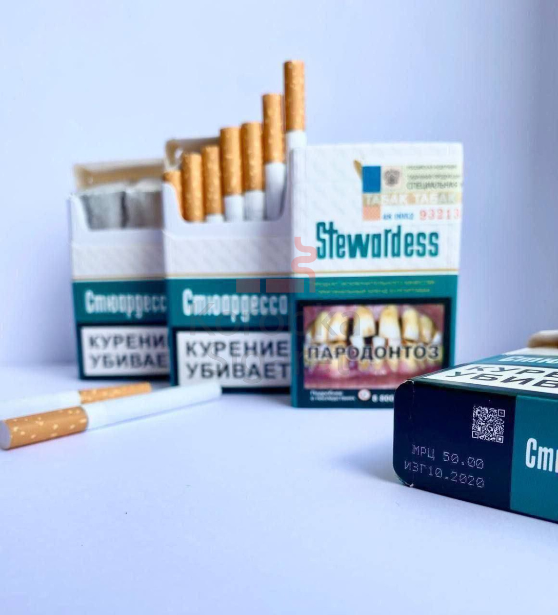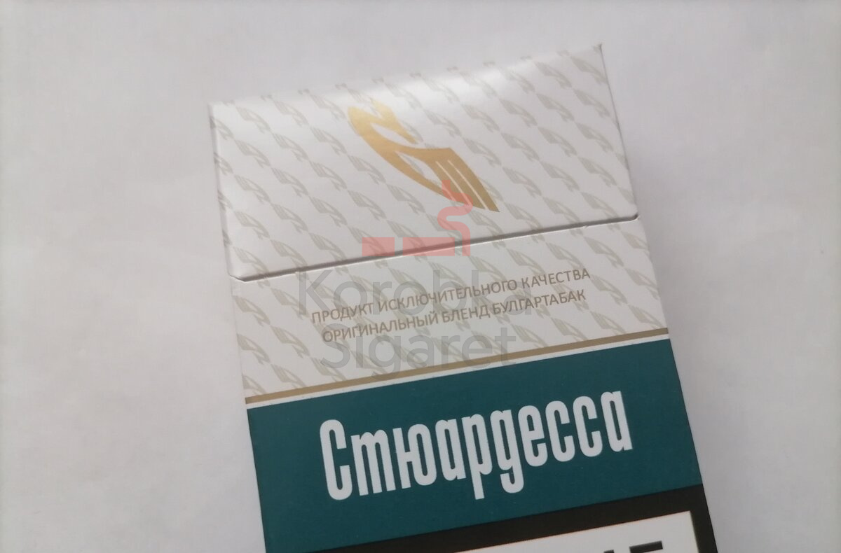 СТЮАРДЕССА (МРЦ 60) - сигареты выпускаются в стандартном размере и комплектуются ацетатным фильтром. Длина изделия составляет 83 мм при диаметре 7,8 мм. Как и другие сигареты марки «СТЮАРДЕССА» производства АО «ПССФ» (пгт Погар, Брянская область), они отличаются качественной сборкой и ровными швами. Модель создана на основе табачной смеси American Blend и относится к категории крепких сигарет. Содержание веществ: никотин — 0,7 мг, смолы — 9 мг, угарный газ (CO) — 10 мг. Вкус характеризуется как густой, с мягким послевкусием. Болгарские сигареты «СТЮАРДЕССА» обеспечивают легкое курение без раздражения горла. Изделия упакованы в пачку формата King Size с преобладающим бирюзовым цветом в дизайне. Поставляются в крупногабаритных коробках по 500 пачек. Размеры коробки: 438 × 238 × 562 мм (ширина/длина/высота). Вес упаковки — 12,5 кг.